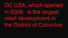 DC USA, which opened in February 2008, is the largest retail development in the District of Columbia. Located in the heart of Columbia Heights, the 890,000 square foot, $145 million retail complex is the cornerstone of the neighborhood's revitalization efforts. DC USA is a pedestrian-oriented retail complex located adjacent to the Columbia Heights Metro station. Anchored by the District's first Target - a two-level 180,000-square foot facility - the 85% occupied complex also includes 15,000 square feet of space for small minority-owned businesses and 1,000 below-grade parking spaces.